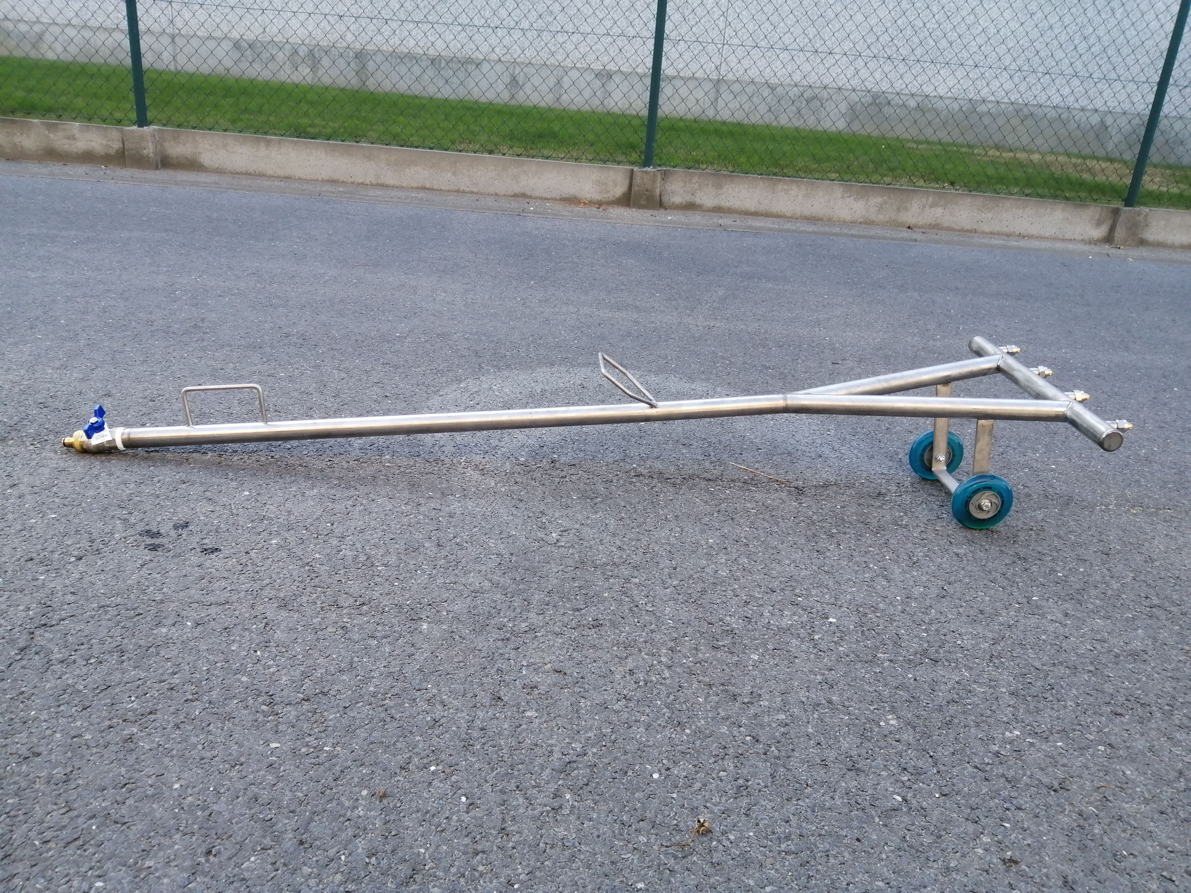 Spüllanze auch Wasserbesen genannt hat einen wasserführenden Querbalken. Die gesamte Konstruktion ist aus Edelstahl gefertigt und ist von der Qualität her ein Lebensbegleiter für den rauen Alltag im Bauhandwerk, Landschaftspflege und dem Gartenlandschaftsbau.