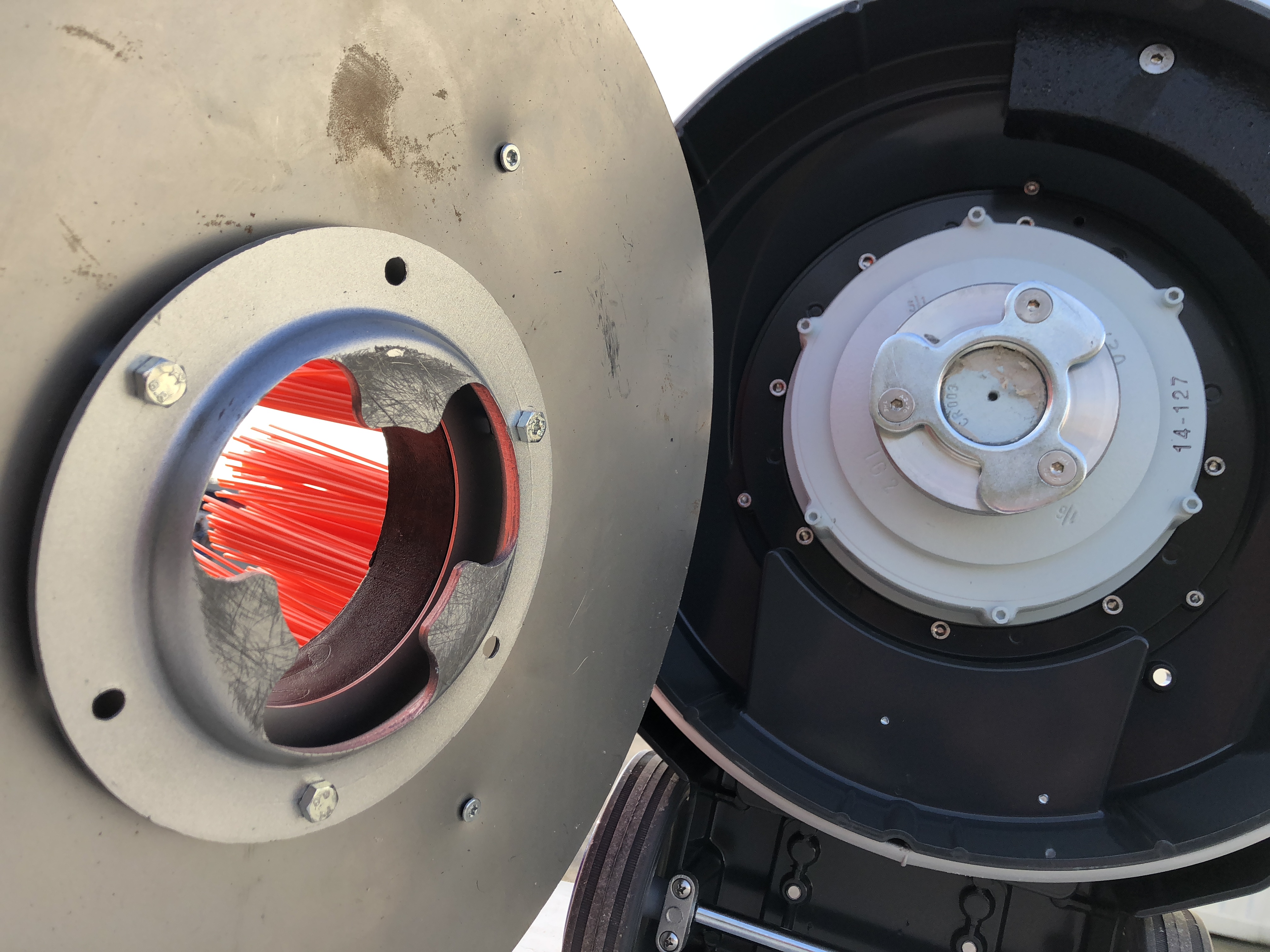 Die Weedee Bürste wird auch Grobschmutzbürste oder Baustellenbürste genannt. Entwickelt wurde die hochgewachsene Reinigungsbürste für die Unkrautentfernung, Wildkrautentfernung und Moosentfernung aus Steinplattenfugen oder Pflastersteinfugen. Robuste große Pflastersteine auch Kopfsteinpflaster genannt, lassen sich auf idealer Weise reinigen. Nur mit Wasser und Bürste beim Kopfsteinpflaster. Trocken für die Fugenreinigung. Diese Bürste von Terrazza MC muss man als gewerblicher Dienstleister haben. Bei der Bestellung sollte man sich besser beraten lassen. So lässt sich die Bürste in der kabelfreien Weedee Pro Maschine einsetzen oder auch in der 230 Volt Version als Terassen Reinigungsmaschine. Als Option gibt es andere Aufnahmen als diese im Bild zu sehen.